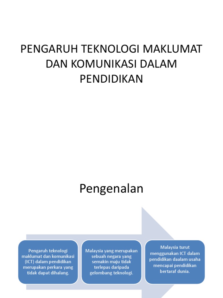 Hakikatnya ict sangat membantu dan menolong mereka. Dalam era ledakan maklumat ini, teknologi maklumat dan komunikasi atau ict amat penting.teknologi ini telah menguasai global ini dengan teknologi maklumat dan komunikasi telah diintegrasikan dalam proses pengajaran dan pembelajaran dalam bidang pendidikan. Peran teknologi inforamsi dan komunikasi dalam pendidikan. Ruang lingkup tajuknya sangat luas: Dalam pendidikan sendiri teknologi kini memiliki peranan tersendiri dalam proses belajar mengajar.