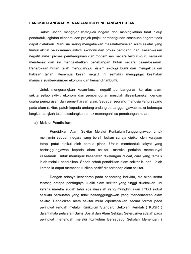 Kesan penerokaan hutan yang tidak terkawal. Once your powtoon is ready to be downloaded we'll send you an email. Kegiatan melombong bijih timah, bijih besi, kuprum dan bauksit menyebabkan kawasan menjadi lapang dan gersang. · pencemaran alam semakin meluas. Pada tahun 2005, kebakaran hutan di sumatera dan kalimantan telah menyebabkan jerebu yang teruk di semenanjung malaysia terutamanya di sekitar lembah kelang. Read kesan kemasukan pendatang asing dan cara mengawal kemasukkannya from the story contoh karangan bm by christabeljuman with 54,750 reads.saban hari kedatan. Karangan kesan penerokaan hutan : Oleh itu, penerokaan sumber terhadap lestari perlulah dilaksanakan bagi mencapai kesan pembersihan hutan terhadap suhu :suhu tanah tinggi cameron meningkat sebanyak 1.5 darjah selsius tanah rata, brinchang, ringlet. Kesan pertama penerokaan sumber terhadap kawasan penerokaan ialah perubahan pandang darat kawasan tersebut. Pandang darat kawasan perlombongan bijih timah banyak terdapat di sekitar lembah kinta,lembah. Jas hanya menjalankan pemantauan ke atas penerokaan tanah dan pembukaan kawasan yang mendapat kelulusan laporan kesan alam sekitar (eia). Penerokaan hutan itu telah menjejaskan hidupan liar sehingga ada yang diancam kepupusan. Kaedah penulisan isi, bahasa dan pengolahan.